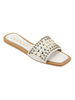 Strut your stuff in style with our Studded Square Toe Sandal. With a unique round studded design, this vegan leather sandal is sure to turn heads. The lightly padded footbed ensures comfort while the slip-on style and .75 inch heel height make it easy to wear all day.