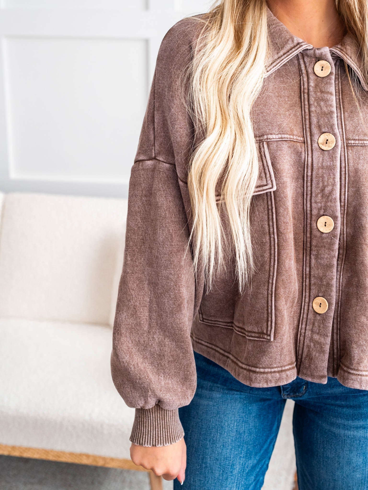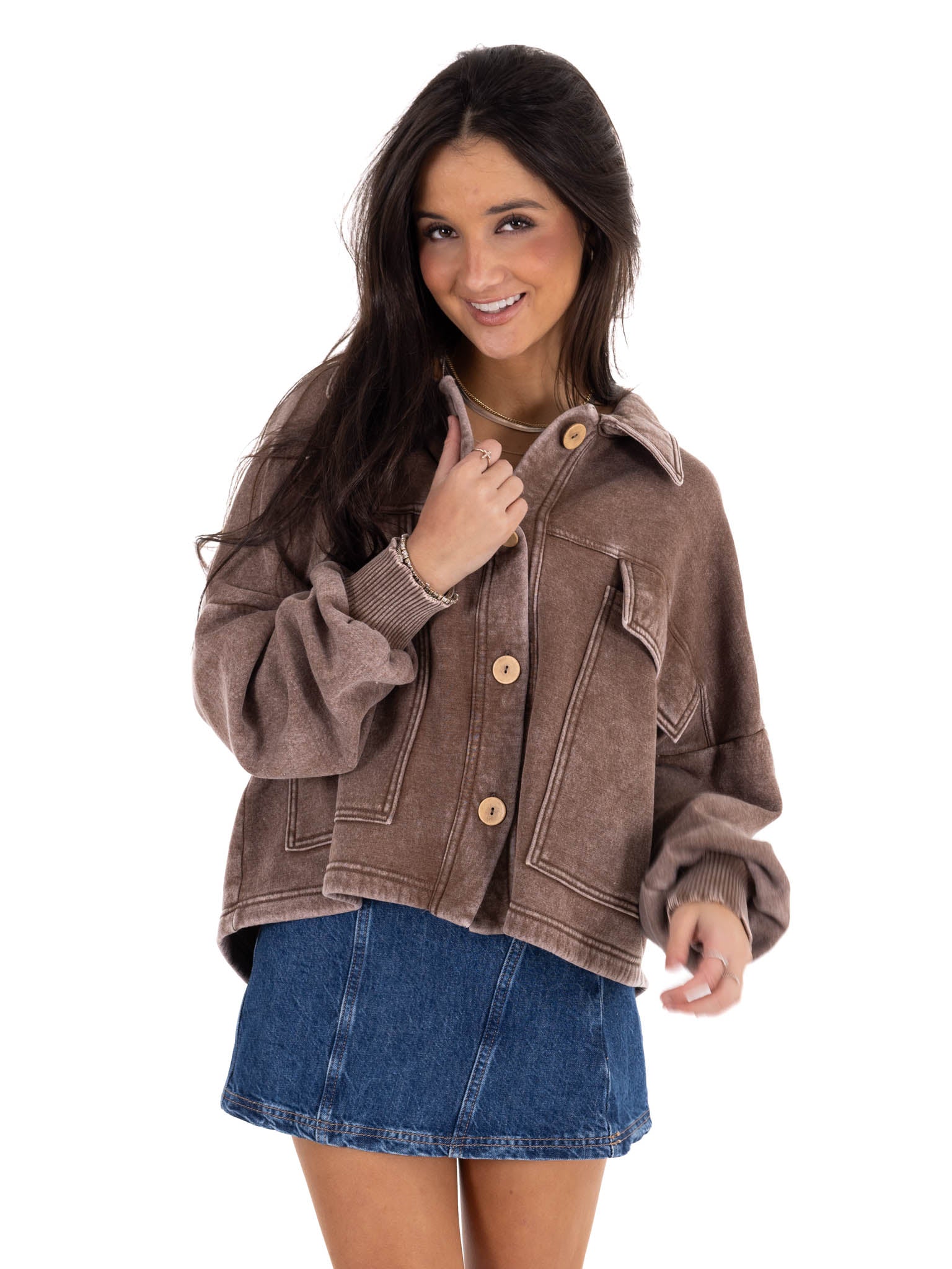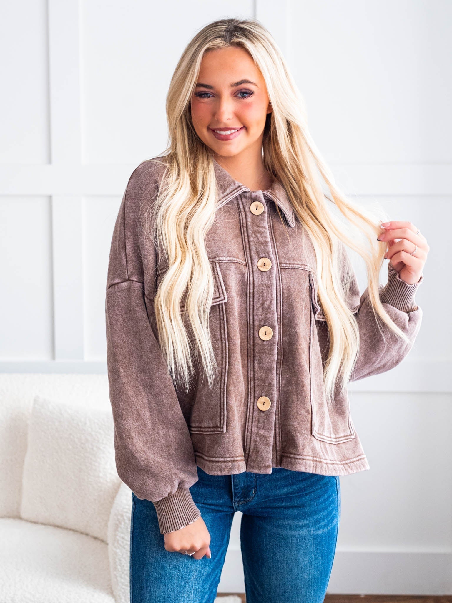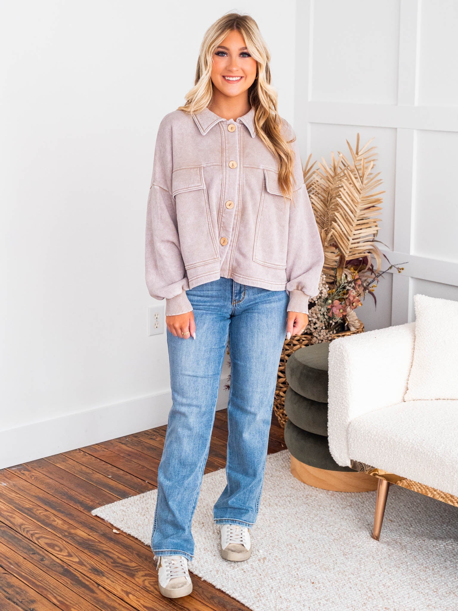 Start your look with our Sweet Beginnings Cropped Shacket! Perfect for a day out, this acid-washed shacket adds a pop of color to any wardrobe. Button it up for a complete look and accessorize with the Sweet Beginnings Palazzo Pants to make it a set. With two front pockets you'll have room to store all your essentials. Get ready to have a sweet beginning!