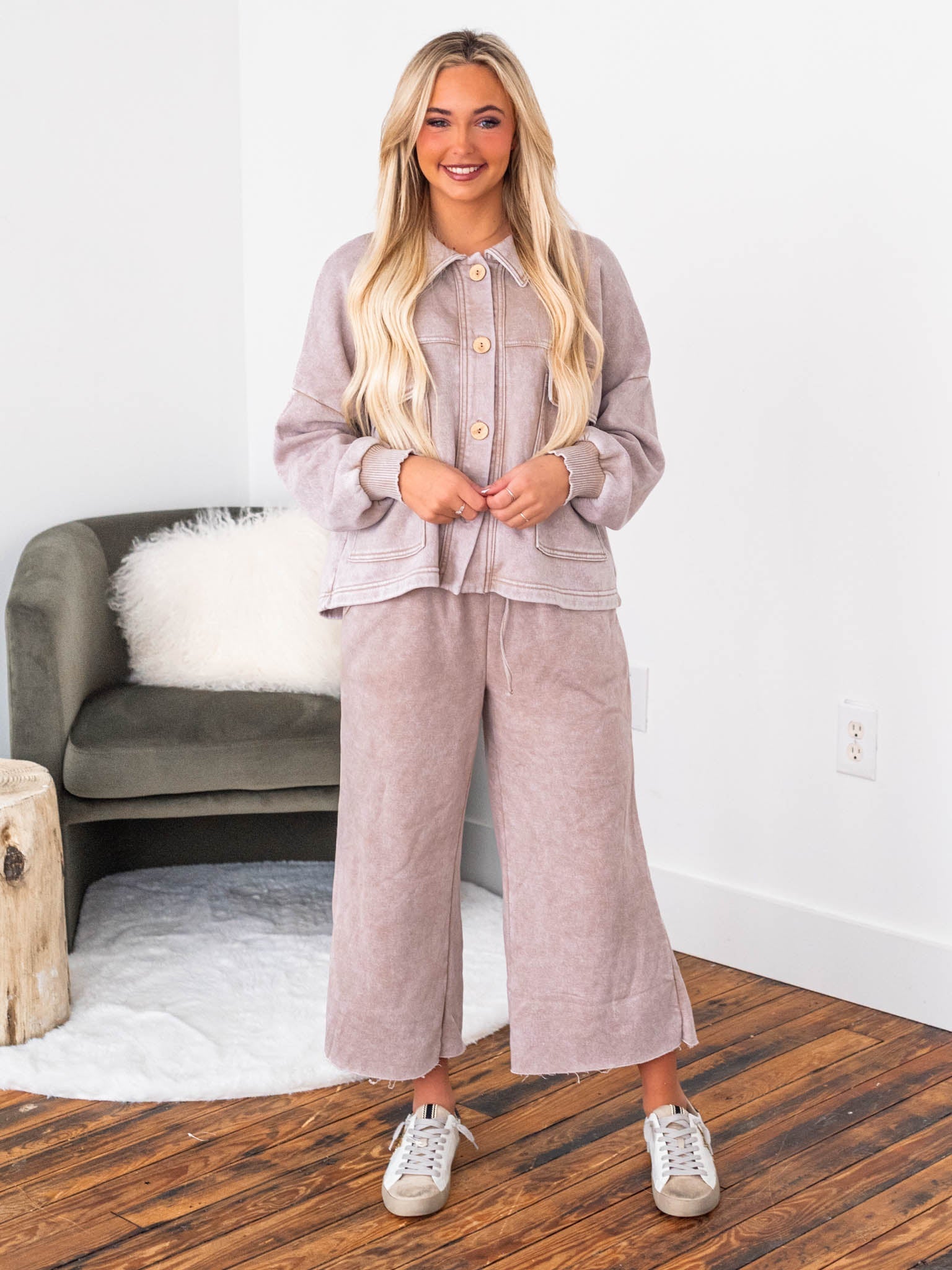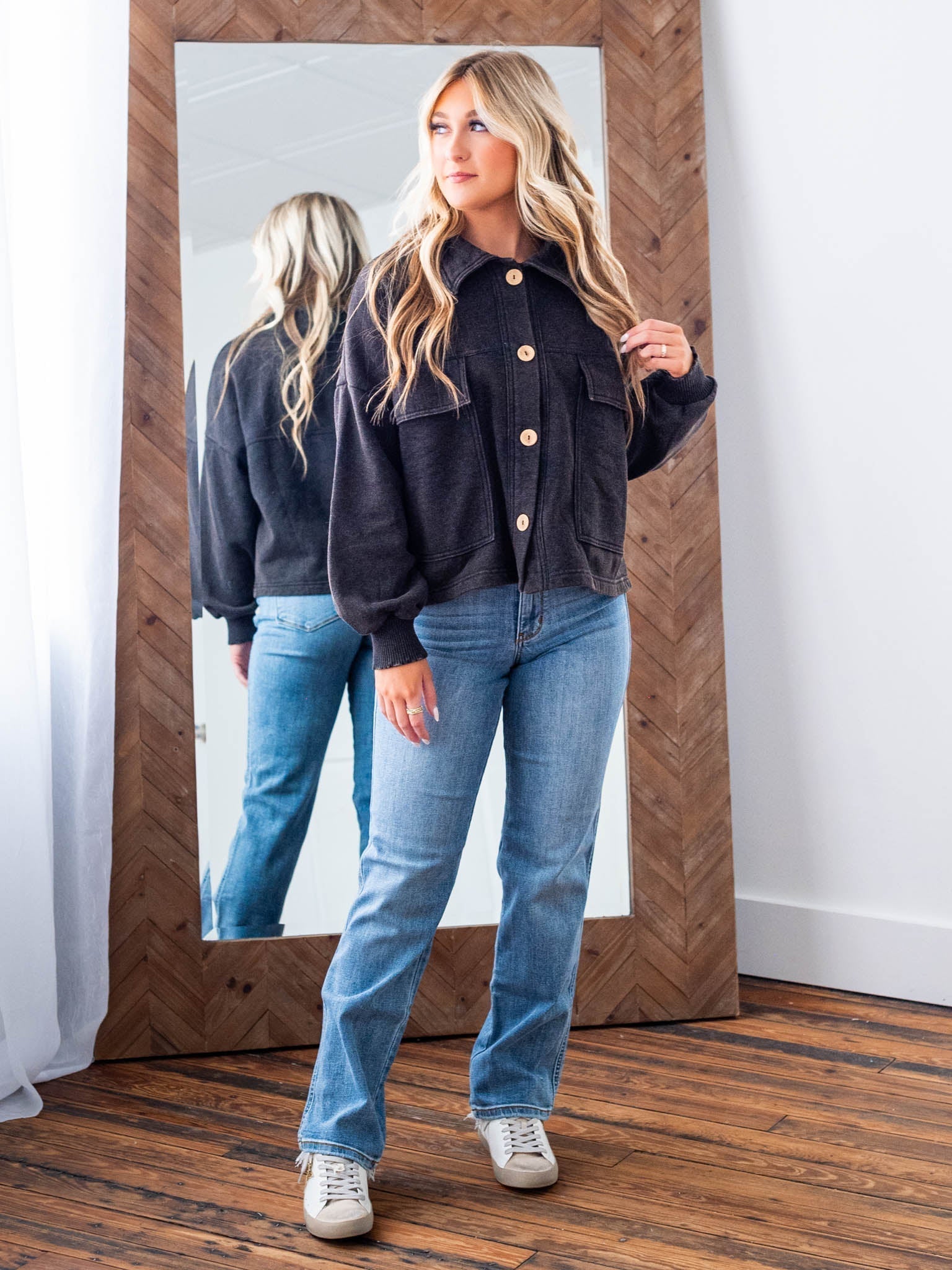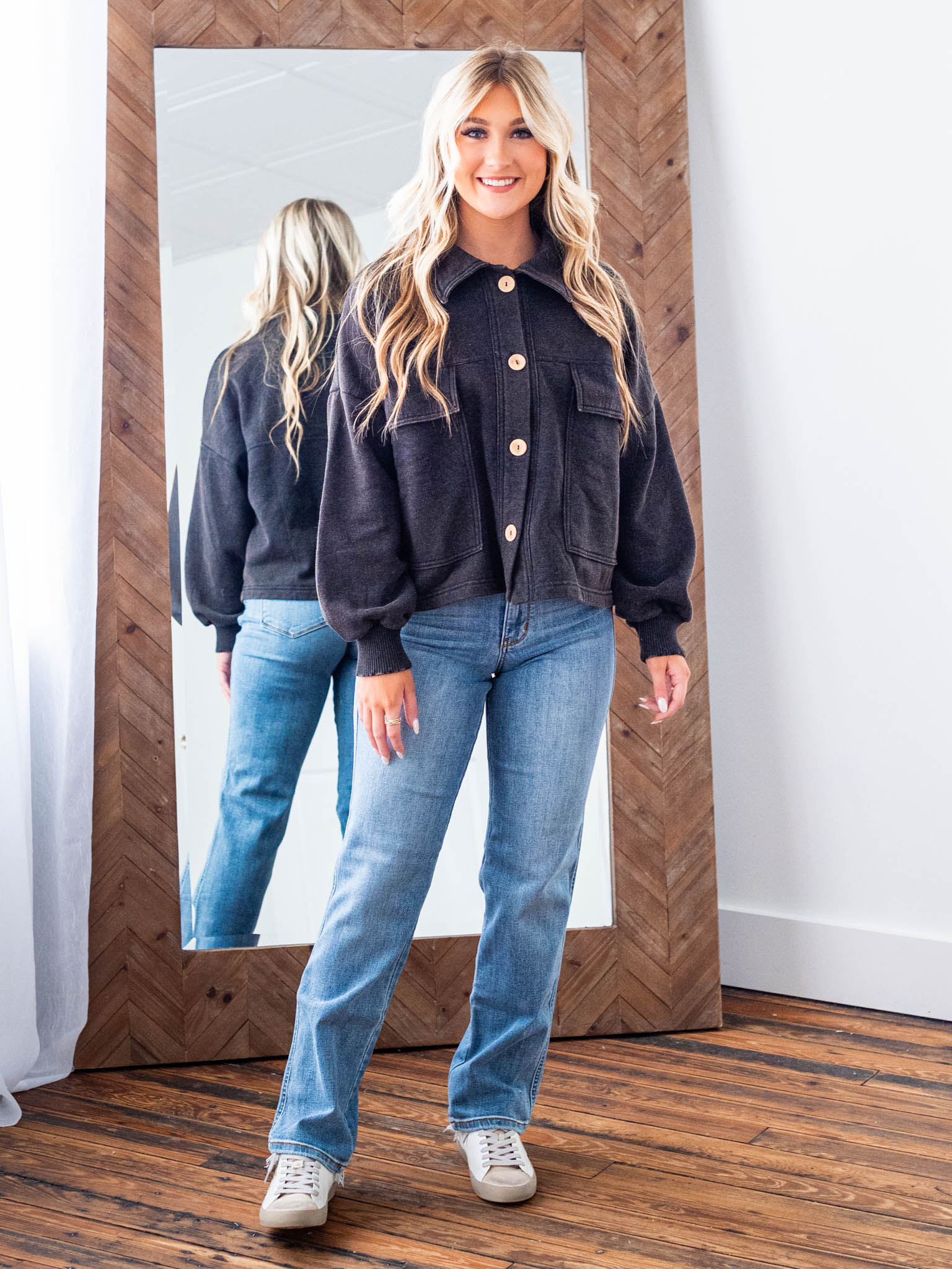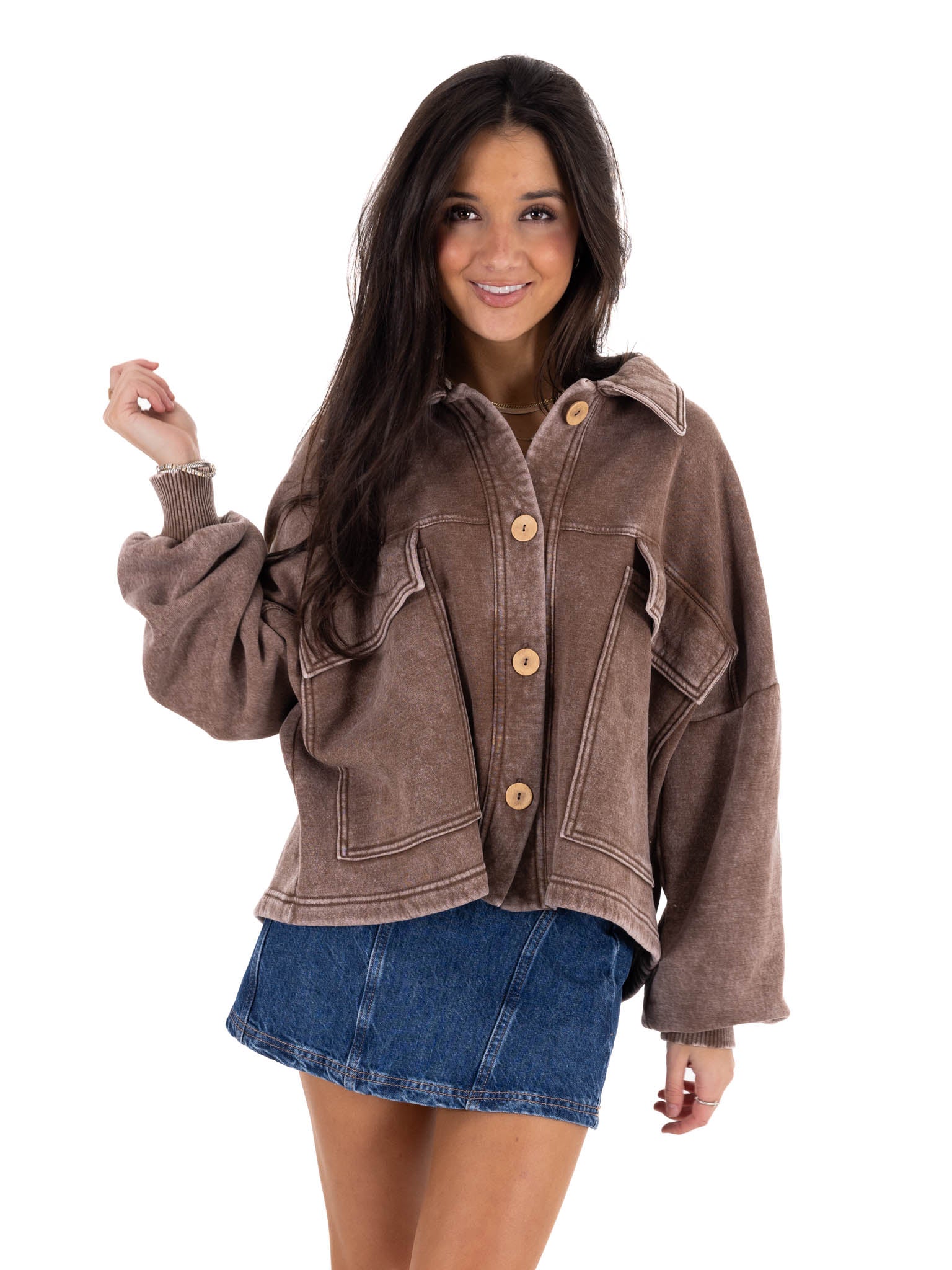 Start your look with our Sweet Beginnings Cropped Shacket! Perfect for a day out, this acid-washed shacket adds a pop of color to any wardrobe. Button it up for a complete look and accessorize with the Sweet Beginnings Palazzo Pants to make it a set. With two front pockets you'll have room to store all your essentials. Get ready to have a sweet beginning!