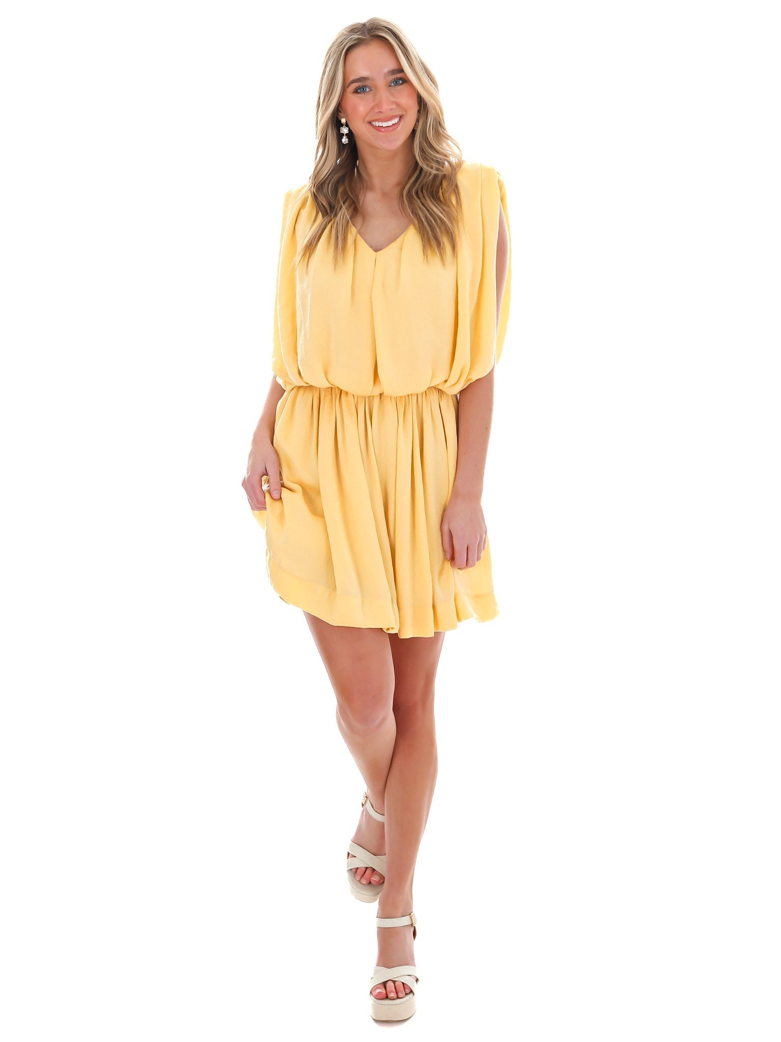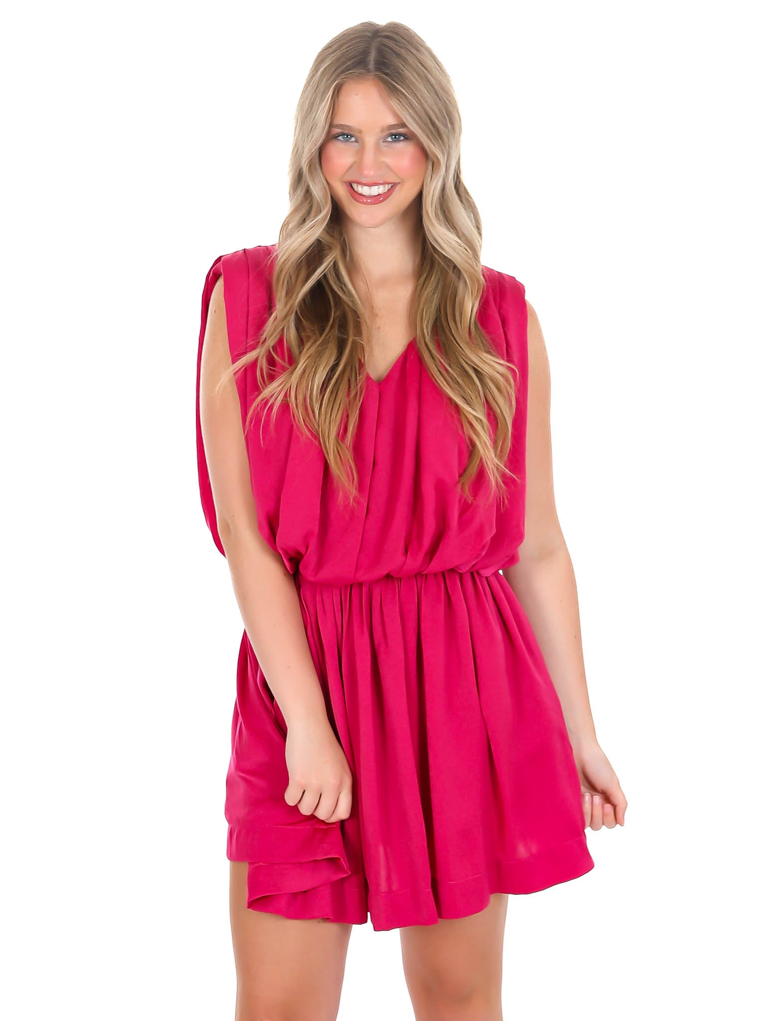 This Sweet Talking Romper Dress is the perfect choice for any casual occasion! The romper comes with shorts underneath, a flattering v-neckline, convenient side pockets, and an elastic waist for a comfortable fit. The pleated design adds a classic touch for a timeless look.