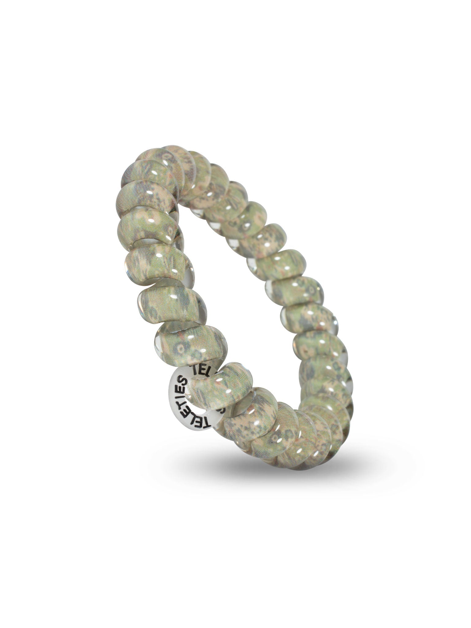 Hold your hair and enhance your style with TELETIES. The strong grip, no rip hair tie that doubles as a bracelet. Strong, pretty and stylish, TELETIES are designed to withstand everyday demands while taking your look to the next level. Sold in packs of three. The large size is 6.5cm wide x 1cm thick.