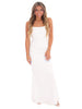 The perfect dress for garden parties and summer soirees! This stunning white maxi dress features a delicate rose design cascading down the back straps, adding a touch of whimsy to your look. With a lined bodice, you'll feel confident and comfortable all day.