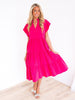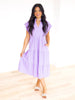 This solid v-neck flutter sleeve midi dress is a must-have for any fashionista's wardrobe. The tiered design adds a playful touch, while the pockets provide convenience. This lined, non-sheer dress is perfect for any occasion and the lightweight fabric makes it a comfortable choice. Yes, please!