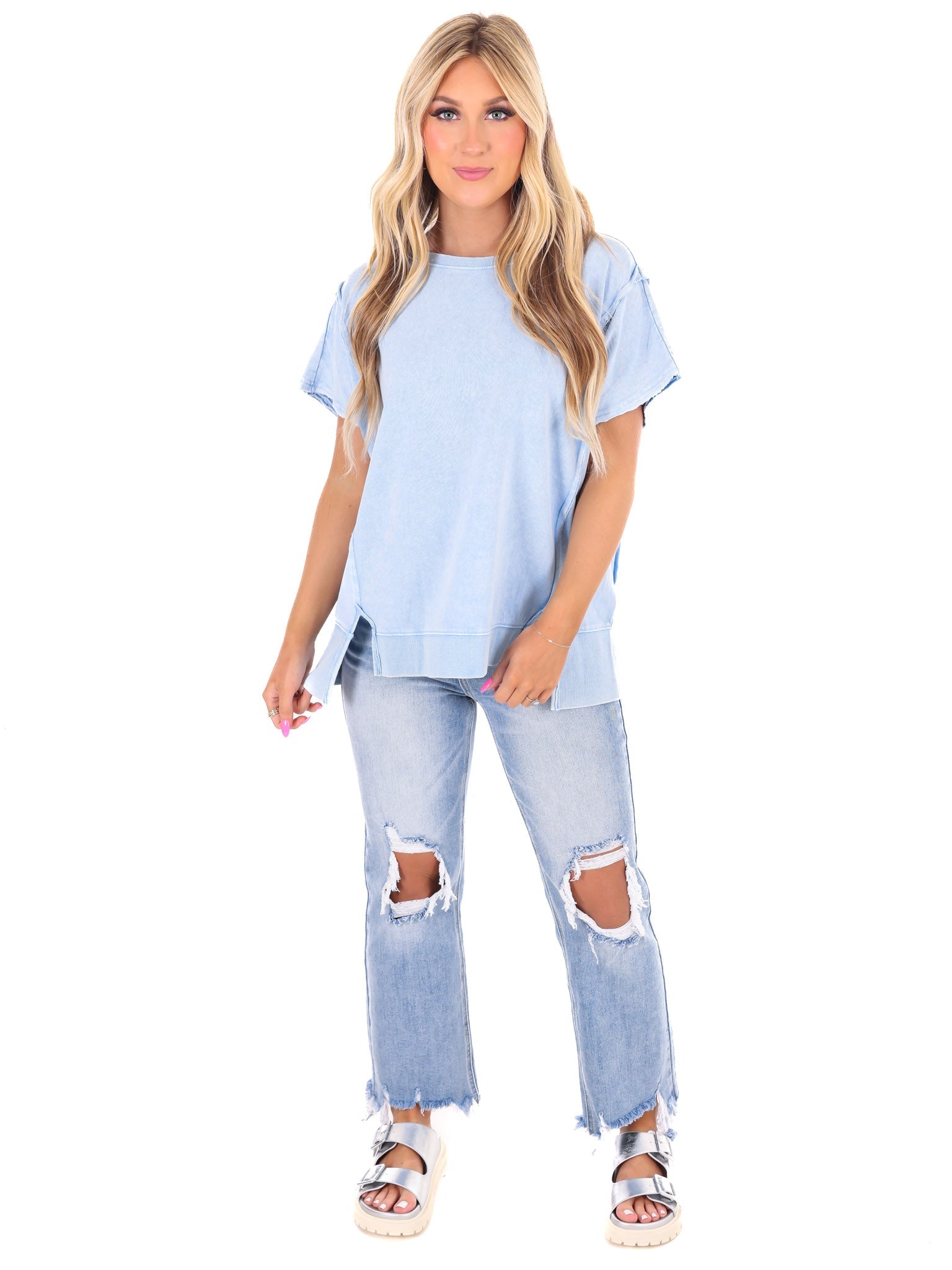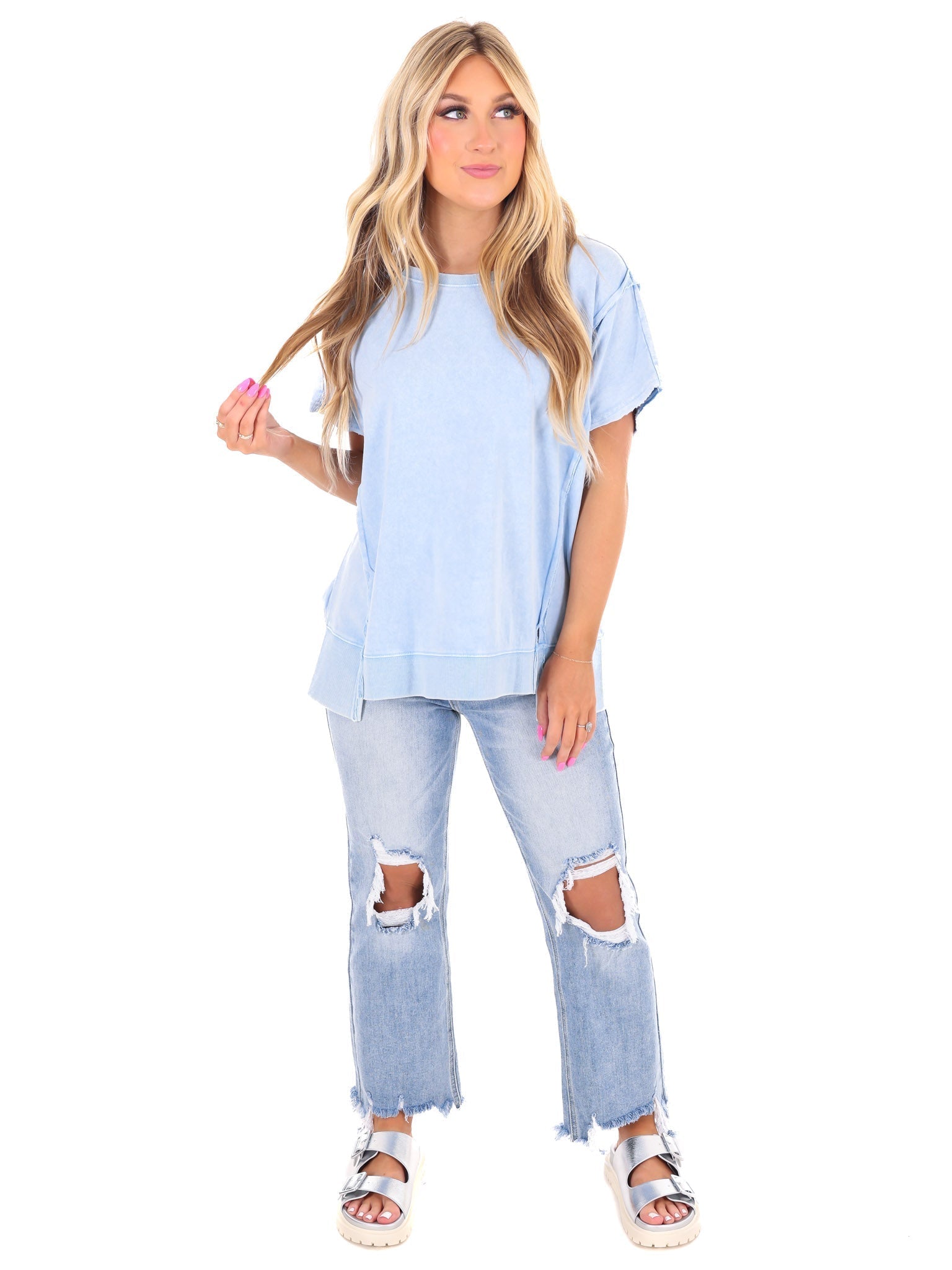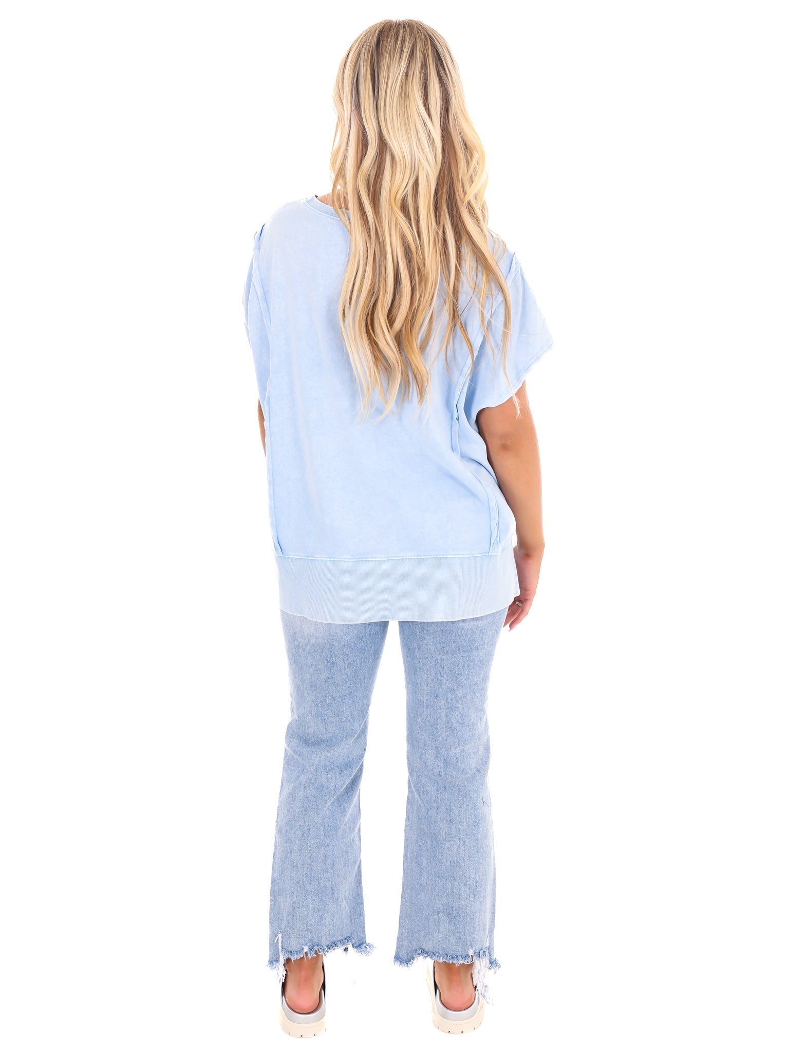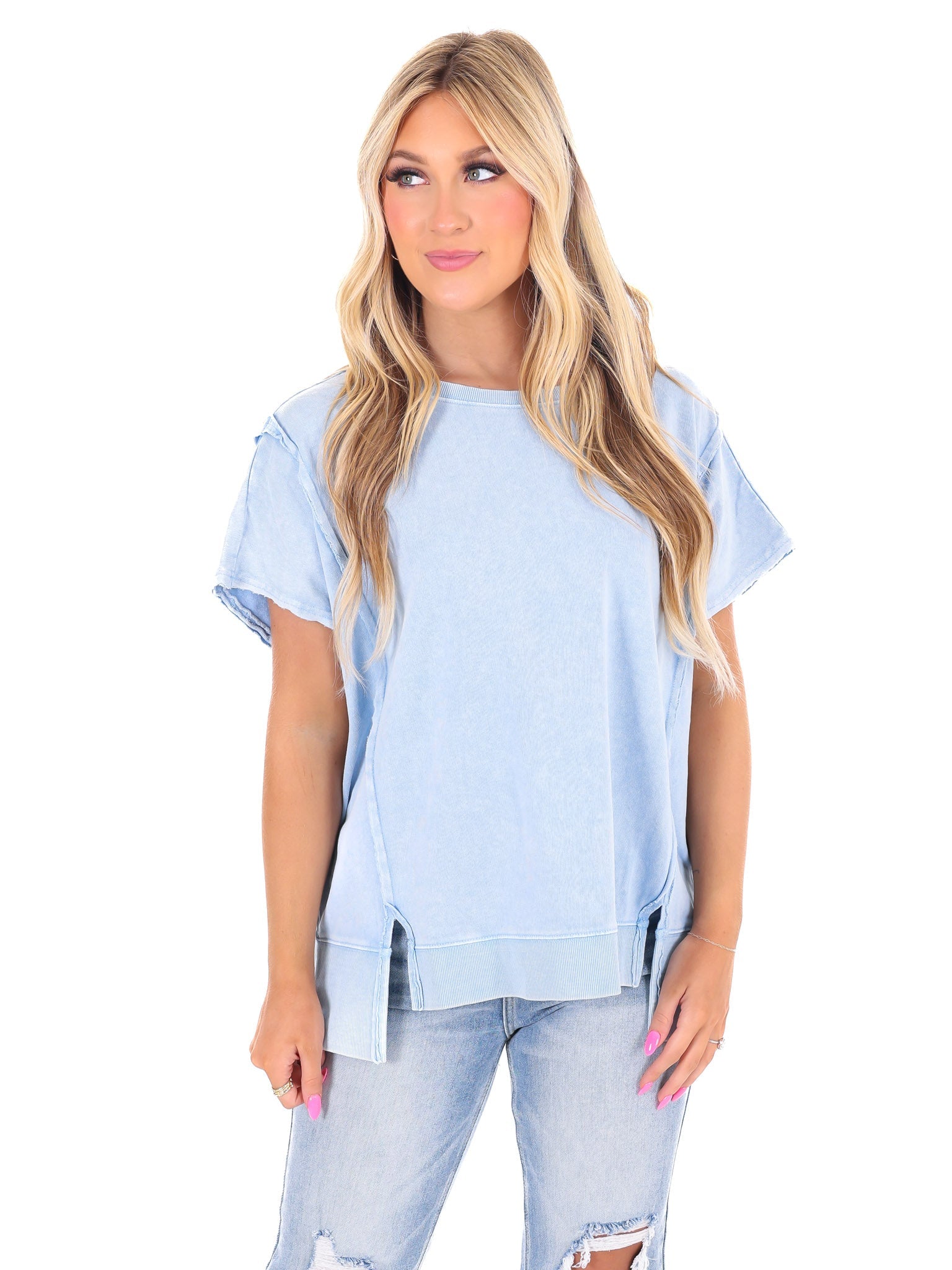 Looking for a top that's comfy and stylish? Look no further than You Should Go Top. Featuring a mineral washed terry knit fabric, a rounded and ribbed neckline, and panel detailing, this top is perfect for any casual occasion. With a loose, relaxed fit and high low banded hem, you'll be comfortable and fashionable all day long.
